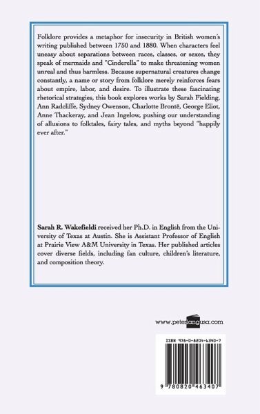 Folklore provides a metaphor for insecurity in British women's writing published between 1750 and 1880. When characters feel uneasy about separations between races, classes, or sexes, they speak of mermaids and "Cinderella" to make threatening women unreal and thus harmless. Because supernatural creatures change constantly, a name or story from folklore merely reinforces fears about empire, labor, and desire. To illustrate these fascinating rhetorical strategies, this book explores works by Sarah Fielding, Ann Radcliffe, Sydney Owenson, Charlotte Brontë, George Eliot, Anne Thackeray, and Jean Ingelow, pushing our understanding of allusions to folktales, fairy tales, and myths beyond "happily ever after."