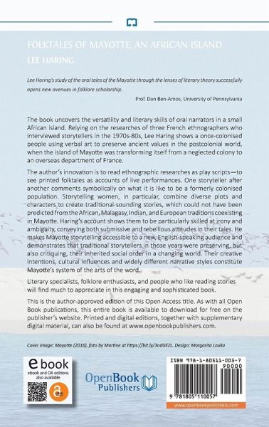 The book uncovers the versatility and literary skills of oral narrators in a small African island. Relying on the researches of three French ethnographers who interviewed storytellers in the 1970s-80s, Lee Haring shows a once-colonised people using verbal art to preserve ancient values in the postcolonial world, when the island of Mayotte was transforming itself from a neglected colony to an overseas department of France. The author's innovation is to read ethnographic researches as play scripts-to see printed folktales as accounts of live performances. One storyteller after another comments symbolically on what it is like to be a formerly colonised population. Storytelling women, in particular, combine diverse plots and characters to create traditional-sounding stories, which could not have been predicted from the African, Malagasy, Indian, and European traditions coexisting in Mayotte. Haring's account shows them to be particularly skilled at irony and ambiguity, conveying both submissive and rebellious attitudes in their tales. He makes Mayotte storytelling accessible to a new, English-speaking audience and demonstrates that traditional storytellers in those years were preserving, but also critiquing, their inherited social order in a changing world. Their creative intentions, cultural influences and widely different narrative styles constitute Mayotte's system of the arts of the word. Literary specialists, folklore enthusiasts, and people who like reading stories will find much to appreciate in this engaging and sophisticated book.