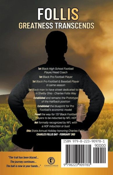 The Book is a nonfiction novel of family experiences and events from slavery to glory in a generation. The story of Charles W. Follis chronicles how this pioneer blazed the trail for black Americans through adversity and triumph. His determination to excel in a new society and his chosen profession, while never compromising the morals and principles his family instilled in him. His strength, courage and endurance are just a few of the qualities he exemplified throughout his life that will inspire a nation of people for generations to come. During this very complex time, he contended with racial bigotry, family aspirations, education, social and political climate. How does the character of one man and support of his family help him to become the shoulders on which millions stand today? When you come to learn about the man Charles W. Follis, you will grow to respect him; appreciate him; and many will grow to love him and the family that instilled the guiding principles that fueled him to become a silent legend; a trail blazing American Pioneer.