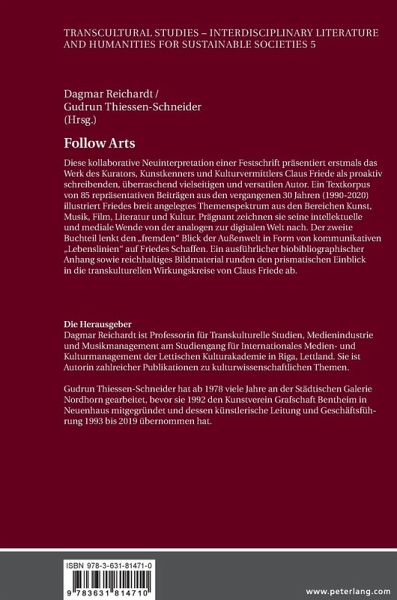 Dieses Buch präsentiert erstmals das Werk des Kurators, Kunstkenners und Kulturvermittlers Claus Friede als proaktiv schreibenden, überraschend vielseitigen und versatilen Autor. Ein Textkorpus von 85 repräsentativen Beiträgen aus den vergangenen 30 Jahren (1990-2020) illustriert Friedes breit angelegtes Themenspektrum aus den Bereichen Kunst, Musik, Film, Literatur und Kultur. Prägnant zeichnen sie seine intellektuelle und mediale Wende von der analogen zur digitalen Welt nach. Der zweite Buchteil lenkt den "fremden" Blick auf Friedes Schaffen aus der Perspektive diverser Kollegen und Freunde. Ein ausführlicher biobibliographischer Anhang sowie reichhaltiges Bildmaterial runden den prismatischen Einblick in die transkulturellen Wirkungskreise von Claus Friede ab.