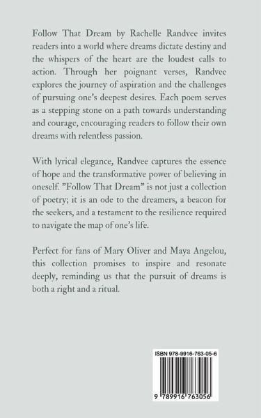 In "Follow Your Dreams," Hanna Helimets invites readers into a world where dreams not only sparkle with possibility but beckon with a palpable urgency. This stirring collection of poems traverses the intricate landscapes of hope, aspiration, and the relentless pursuit of one's deepest desires.With her vivid imagery and profound insight, Helimets crafts each poem as a beacon for the weary soul and a celebration for the spirited heart. From the quiet whispers of dawn to the loud echoes of twilight, her words resonate with anyone who has ever dared to reach beyond the horizon."Follow Your Dreams" is more than a poetry book; it is a journey mapped in the stars and written in the verse of life's endless possibilities. Step into Hanna Helimets's lyrical world, and be inspired to chase the dreams that define your own sky. Copyright © 2024 Book Fairy Publishing