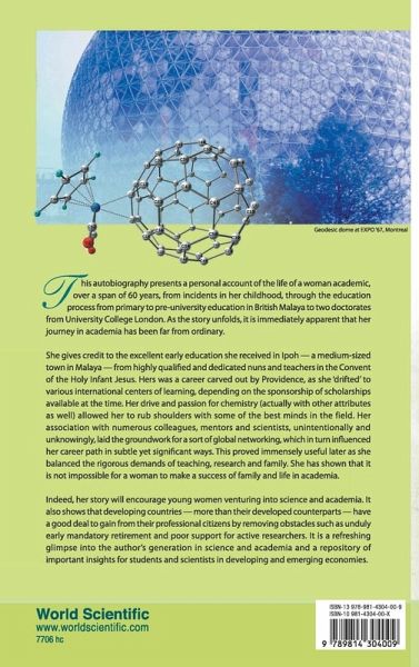 This autobiography presents a personal account of the life of a woman academic, over a span of 60 years, from incidents in her childhood, through the education process from primary to pre-university education in British Malaya to two doctorates from University College London. As the story unfolds, it is immediately apparent that her journey in academia has been far from ordinary. She gives credit to the excellent early education she received in Ipoh a medium-sized town in Malaya from highly qualified and dedicated nuns and teachers in the Convent of the Holy Infant Jesus. Hers was a career carved out by Providence, as she "drifted" to various international centers of learning, depending on the sponsorship of scholarships available at the time. Her drive and passion for chemistry (actually with other attributes as well) allowed her to rub shoulders with some of the best minds in the field. Her association with numerous colleagues, mentors and scientists, unintentionally and unknowingly, laid the groundwork for a sort of global networking, which in turn influenced her career path in subtle yet significant ways. This proved immensely useful later as she balanced the rigorous demands of teaching, research and family. She has shown that it is not impossible for a woman to make a success of family and life in academia. Indeed, her story will encourage young women venturing into science and academia. It also shows that developing countries more than their developed counterparts have a good deal to gain from their professional citizens by removing obstacles such as unduly early mandatory retirement and poor support for active researchers. It is a refreshing glimpse into the author's generation in science and academia and a repository of important insights for students and scientists in developing and emerging economies.