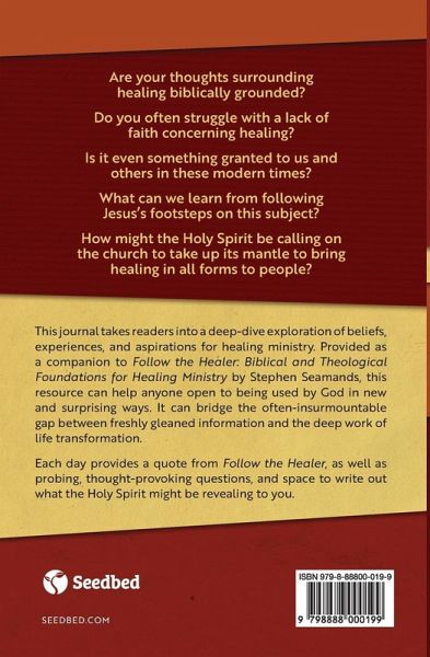 This journal takes readers into a deep-dive exploration of beliefs, experiences, and aspirations for healing ministry. Provided as a companion to Follow the Healer: Biblical and Theological Foundations for Healing Ministry by Stephen Seamands, this resource can help anyone open to being used by God in new and surprising ways. It can bridge the often-insurmountable gap between freshly gleaned information and the deep work of life transformation. Each day provides a quote from Follow the Healer, as well as probing, thought-provoking questions, and space to write out what the Holy Spirit might be revealing to you.