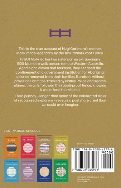This is the true account of Nugi Garimara's mother, Molly, made legendary by the film Rabbit-Proof Fence. In 1931 Molly led her two sisters on an extraordinary 1600-kilometre walk across remote Western Australia. Aged eight, eleven and fourteen, they escaped the confinement of a government institution for Aboriginal children removed from their families. Barefoot, without provisions or maps, tracked by Native Police and search planes, the girls followed the rabbit-proof fence, knowing it would lead them home. Their journey - longer than many of the celebrated treks of recognised explorers - reveals a past more cruel than we could ever imagine.