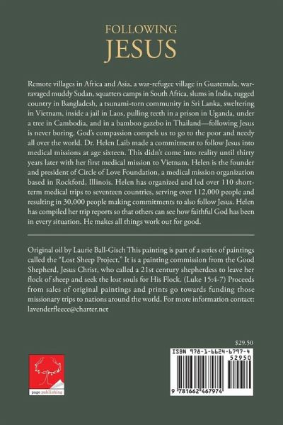 Remote villages in Africa and Asia, a war-refugee village in Guatemala, war-ravaged muddy Sudan, squatters camps in South Africa, slums in India, rugged country in Bangladesh, a tsunami-torn community in Sri Lanka, sweltering in Vietnam, inside a jail in Laos, pulling teeth in a prison in Uganda, under a tree in Cambodia, and in a bamboo gazebo in Thailand--following Jesus is never boring. God's compassion compels us to go to the poor and needy all over the world. Dr. Helen Laib made a commitment to follow Jesus into medical missions at age sixteen. This didn't come into reality until thirty years later with her first medical mission to Vietnam. Helen is the founder and president of Circle of Love Foundation, a medical mission organization based in Rockford, Illinois. Helen has organized and led over 110 short-term medical trips to seventeen countries, serving over 112,000 people and resulting in 30,000 people making commitments to also follow Jesus. Helen has compiled her trip reports so that others can see how faithful God has been in every situation. He makes all things work out for good.