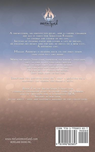 A Friends-To-Lovers story where love takes flight A snowstorm, an unexpected delay, and a caring stranger are all it takes for Sebastian Ruggers to change the course of his life.Instead of pushing paper and living a life he dreads, he follows his heart and the girl he meets to a new city.A different life.Maggie Andrews is heading back to the only town that ever felt like home.When she meets Sebastian, somehow she knows, together, they'll find a life together sweeter than the ones they are leaving behind. She can help him find his future. He can be the person she needs.They only have to say yes.Sometimes you discover home isn't only a location on a map-but the person you share it with. What is Insta-Spark?Book #7 of the Insta-Spark collection. Complete standalone reads with one thing in common - lots of sweetness and a guaranteed HEA. Instant attraction, little angst - love and happiness abounds in this collection.