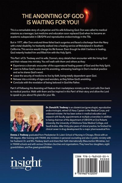 THE ANOINTING OF GOD IS WAITING FOR YOU! This is a remarkable story of a physician and his wife following God. Don was called to medical missions as a teenager, but medicine and education soon replaced God when he became an academic subspecialist in OB/GYN and reproductive endocrinology in the 70s. But in 1977, after Don endured three failed back surgeries and faced a discharge from the Navy with a total disability, he hesitantly walked into a healing service at Melodyland in Southern California. This service would change his life forever. Even though he didn't believe in healing, God instantly healed him and filled him with the Holy Spirit. This Part I of Dr. Tredway and his wife, Donna's, story details their encounter with the living God and their release into ministry. You will walk with them and others as they: Experience a dramatic encounter of the supernatural healing power of God and the Holy Spirit. Learn to follow God's voice and His anointing, witnessing healings in Don's medical practice and as he shares God's word. Leave the security of medicine to live by faith, being totally dependent upon God. Release into a ministry of signs and wonders, as they follow God's anointing. Conclude with the revelation of being beloved in God the Father. Part II of Following the Anointing will feature their marketplace ministry as the Lord calls Don back to medical practice. Walk with them and be inspired in this Part I of their story and allow the Lord to speak to you about His plans for your life.