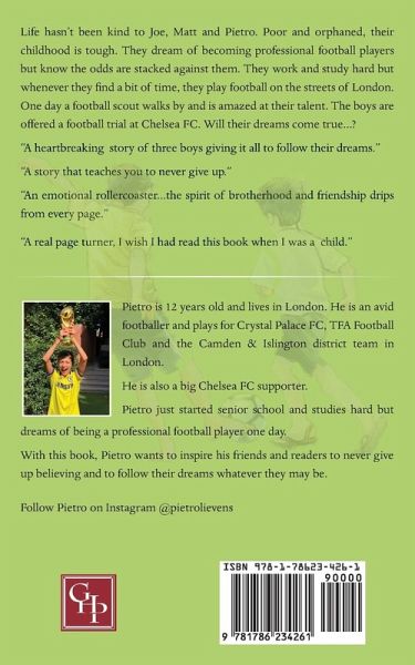 Life hasn’t been kind to Joe, Matt and Pietro. Poor and orphaned, their childhood is tough. They dream of becoming professional football players but know the odds are stacked against them. They work and study hard but whenever they find a bit of time, they play football on the streets of London. One day a football scout walks by and is amazed at their talent. The boys are offered a football trial at Chelsea FC. Will their dreams come true...?