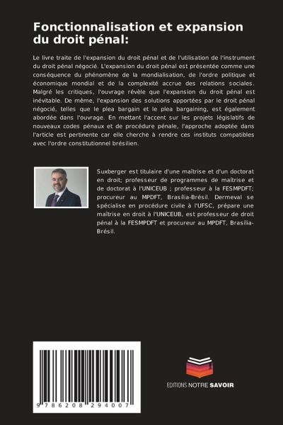 Le livre traite de l'expansion du droit pénal et de l'utilisation de l'instrument du droit pénal négocié. L'expansion du droit pénal est présentée comme une conséquence du phénomène de la mondialisation, de l'ordre politique et économique mondial et de la complexité accrue des relations sociales. Malgré les critiques, l'ouvrage révèle que l'expansion du droit pénal est inévitable. De même, l'expansion des solutions apportées par le droit pénal négocié, telles que le plea bargain et le plea bargaining, est également abordée dans l'ouvrage. En mettant l'accent sur les projets législatifs de nouveaux codes pénaux et de procédure pénale, l'approche adoptée dans l'article est pertinente car elle cherche à rendre ces instituts compatibles avec l'ordre constitutionnel brésilien.