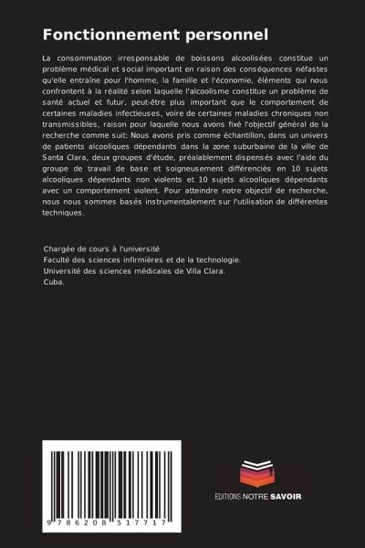 La consommation irresponsable de boissons alcoolisées constitue un problème médical et social important en raison des conséquences néfastes qu'elle entraîne pour l'homme, la famille et l'économie, éléments qui nous confrontent à la réalité selon laquelle l'alcoolisme constitue un problème de santé actuel et futur, peut-être plus important que le comportement de certaines maladies infectieuses, voire de certaines maladies chroniques non transmissibles, raison pour laquelle nous avons fixé l'objectif général de la recherche comme suit: Nous avons pris comme échantillon, dans un univers de patients alcooliques dépendants dans la zone suburbaine de la ville de Santa Clara, deux groupes d'étude, préalablement dispensés avec l'aide du groupe de travail de base et soigneusement différenciés en 10 sujets alcooliques dépendants non violents et 10 sujets alcooliques dépendants avec un comportement violent. Pour atteindre notre objectif de recherche, nous nous sommes basés instrumentalement sur l'utilisation de différentes techniques.