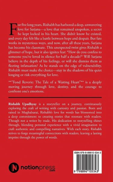 For five long years, Rishabh has harbored a deep, unwavering love for Sarjana-a love that remained unspoken, a secret he kept locked in his heart. She didn't know he existed, and every day felt like a battle between hope and despair. But fate works in mysterious ways, and now, after all these years, Sarjana has become his classmate. This unexpected twist gives Rishabh a glimmer of hope, but it also ignites fear: *How do you confess to someone you've loved in silence for half a decade?* Will Sarjana believe in the depth of his feelings, or will she dismiss them as fleeting infatuation? As he stands on the edge of vulnerability, Rishabh must make the choice-stay in the shadows of his quiet longing or risk everything for love. **"Fond Reverie: The Tale of a Waiting Heart"** is a deeply moving journey through love, destiny, and the courage to confront one's emotions.
