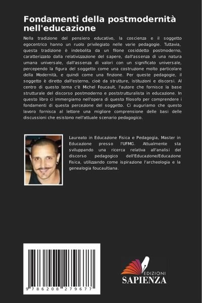Nella tradizione del pensiero educativo, la coscienza e il soggetto egocentrico hanno un ruolo privilegiato nelle varie pedagogie. Tuttavia, questa tradizione è indebolita da un filone cosiddetto postmoderno, caratterizzato dalla relativizzazione del sapere, dall'assenza di una natura umana universale, dall'assenza di valori con un significato universale, percependo la figura del soggetto come una costruzione molto particolare della Modernità, e quindi come una finzione. Per queste pedagogie, il soggetto è diretto dall'esterno, cioè da strutture, istituzioni e discorsi. Al centro di questo tema c'è Michel Foucault, l'autore che fornisce la base strutturale del discorso postmoderno e poststrutturalista in educazione. In questo libro ci immergiamo nell'opera di questo filosofo per comprendere i fondamenti di questa percezione del soggetto. Ci auguriamo che questo lavoro fornisca al lettore una migliore comprensione delle basi delle discussioni che esistono nell'attuale scenario pedagogico.