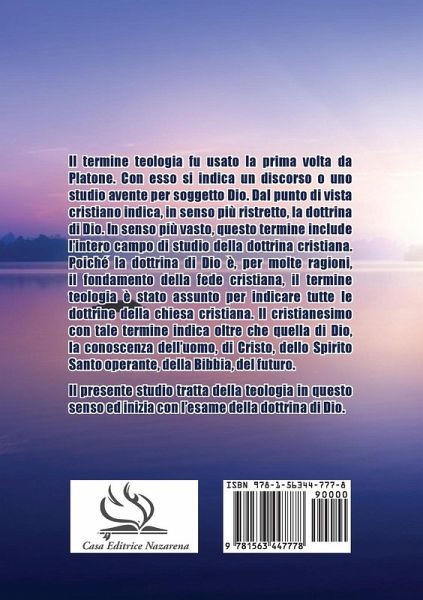 Il termine teologia fu usato la prima volta da Platone. Con esso si indica un discorso o uno studio avente per soggetto Dio. Dal punto di vista cristiano indica, in senso più ristretto, la dottrina di Dio. In senso più vasto, questo termine include l'intero campo di studio della dottrina cristiana. Poiché la dottrina di Dio è, per molte ragioni, il fondamento della fede cristiana, il termine teologia è stato assunto per indicare tutte le dottrine della chiesa cristiana. Il cristianesimo con tale ter-mine indica oltre che quella di Dio, la conoscenza dell'uomo, di Cristo, dello Spirito Santo operante, della Bibbia, del futuro. Il presente studio tratta della teologia in questo senso ed inizia con l'esame della dottrina di Dio.
