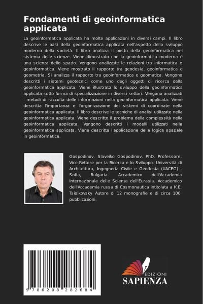 La geoinformatica applicata ha molte applicazioni in diversi campi. Il libro descrive le basi della geoinformatica applicata nell'aspetto dello sviluppo moderno della società. Il libro analizza il posto della geoinformatica nel sistema delle scienze. Viene dimostrato che la geoinformatica moderna è una scienza dello spazio. Vengono analizzate le relazioni tra informatica e geoinformatica. Viene mostrato il rapporto tra geodesia, geoinformatica e geometria. Si analizza il rapporto tra geoinformatica e geomatica. Vengono descritti i sistemi geotecnici come uno degli oggetti di ricerca della geoinformatica applicata. Viene illustrato lo sviluppo della geoinformatica applicata sotto forma di specializzazione in diversi settori. Vengono analizzati i metodi di raccolta delle informazioni nella geoinformatica applicata. Viene descritta l'importanza e l'organizzazione dei sistemi di coordinate nella geoinformatica applicata. Il libro descrive le tecniche di analisi utilizzate nella geoinformatica applicata. Viene descritto il problema della complessità nella geoinformatica applicata. Vengono descritti i modelli utilizzati nella geoinformatica applicata. Viene descritta l'applicazione della logica spaziale in geoinformatica.