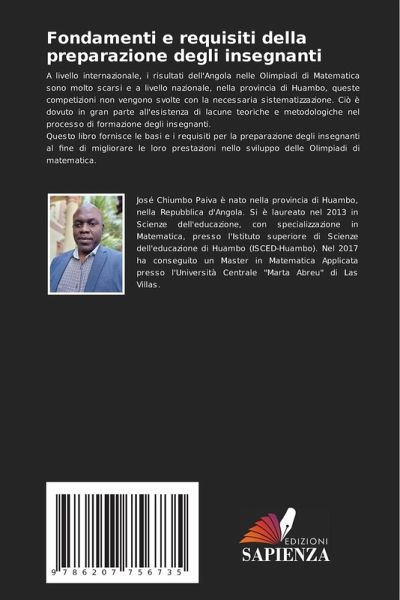 A livello internazionale, i risultati dell'Angola nelle Olimpiadi di Matematica sono molto scarsi e a livello nazionale, nella provincia di Huambo, queste competizioni non vengono svolte con la necessaria sistematizzazione. Ciò è dovuto in gran parte all'esistenza di lacune teoriche e metodologiche nel processo di formazione degli insegnanti.Questo libro fornisce le basi e i requisiti per la preparazione degli insegnanti al fine di migliorare le loro prestazioni nello sviluppo delle Olimpiadi di matematica.