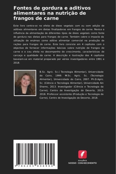 Este livro centra-se no efeito de óleos vegetais com ou sem adição de aditivos alimentares em dietas finalizadoras em frangos de carne. Revisa a influência da alimentação de diferentes tipos de óleos vegetais como fonte de gordura nas dietas para frangos de carne. Também cobre o impacto da utilização de enzimas como aditivo alimentar comercial na produção de rações para frangos de carne. Este livro consiste em 4 capítulos com o objectivo de fornecer informações básicas sobre nutrição de frangos de carne e o seu efeito no desempenho de crescimento, características de carcaça e qualidade da carne. A descrição e ilustração dos 4 capítulos baseiam-se em material preparado por vários investigadores entre 1991 e 2018.