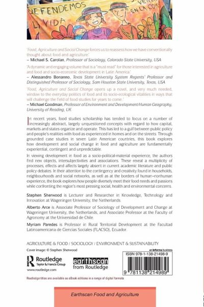 In recent years, food studies scholarship has tended to focus on a number of increasingly abstract, largely unquestioned concepts with regard to how capital, markets and states organize and operate. This has led to a gulf between public policy and people's realities with food as experienced in homes and on the streets. Through grounded case studies in seven Latin American countries, this book explores how development and social change in food and agriculture are fundamentally experiential, contingent and unpredictable. In viewing development in food as a socio-political-material experience, the authors find new objects, intersubjectivities and associations. These reveal a multiplicity of processes, effects and affects largely absent in current academic literature and public policy debates. In their attention to the contingency and creativity found in households, neighbourhoods and social networks, as well as at the borders of human-nonhuman experience, the book explores how people diversely meet their food needs and passions while confronting the region's most pressing social, health and environmental concerns.