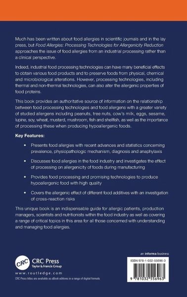 This book provides an authoritative source of information on the relationship between food processing technologies and food allergens with a greater variety of studied allergens including peanuts, tree nuts, cow's milk, eggs, sesame, lupine, soy, wheat and more, as well as the importance processing these when producing hypoallergenic foods.