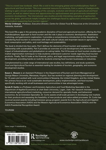This book fills a gap in the growing academic discipline of food and agricultural tourism, offering the first multidisciplinary approach to food tourism and the role it plays in economic development, destination marketing, and gastronomic exploration. It provides a comprehensive introduction to the discipline by considering food tourism in connection with both cultural values and important issues in agriculture, food consumption and safety, and rural heritage and sustainability. Complemented by a wide range of international case studies, key definitions and study questions, this is an essential reading for students of tourism, geography and economic development studies.