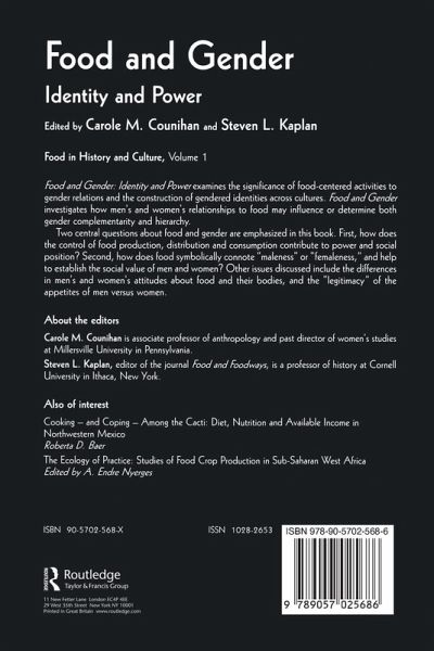 This volume examines, among other things, the significance of food-centered activities to gender relations and the construction of gendered identities across cultures. It considers how each gender's relationship to food may facilitate mutual respect or produce gender hierarchy. This relationship is considered through two central questions: How does control of food production, distribution, and consumption contribute to men's and women's power and social position? and How does food symbolically connote maleness and femaleness and establish the social value of men and women? Other issues discussed include men's and women's attitudes towards their bodies and the legitimacy of their appetites.
