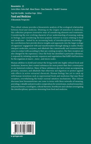 This edited volume provides a biosemiotic analysis of the ecological relationship between food and medicine. Drawing on the origins of semiotics in medicine, this collection proposes innovative ways of considering aliments and treatments. Considering the ever-evolving character of our understanding of meaning-making in biology, and considering the keen popular interest in issues relating to food and medicines - fueled by an increasing body of interdisciplinary knowledge - the contributions here provide diverse insights and arguments into the larger ecology of organisms' engagement with and transformation through taking in matter. Bodies interpret molecules, enzymes, and alkaloids they intentionally and unintentionally come in contact with according to their pre-existing receptors. But their receptors are also changed by the experience. Once the body has identified a particular substance, it responds by initiating semiotic sequences and negotiations that fulfill vital functions for the organism at macro-, meso-, and micro-scales.