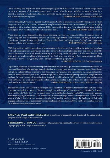Introduction Chapter 1: Food and Place: An Introduction Pascale Joassart-Marcelli and Fernando J. Bosco Chapter 2: A Place Perspective on Food: Key Concepts and Theoretical Foundations Pascale Joassart-Marcelli and Fernando J. Bosco Part I: Food Regimes Chapter 3: Networks of Global Production and Resistance: Meat, Dairy and Place Alida Cantor, Jody Emel, and Harvey Neo Chapter 4: Genetically Modified Crops and the Remaking of Latin America's Food Landscape Elizabeth Fitting Chapter 5: Farm Labor, Immigration and Race Lise Nelson Chapter 6: Ethical Food and Global Commodity Chains Hannah Evans and Pascale Joassart-Marcelli Chapter 7: Global Hunger: Poverty, Inequality, and Vulnerability Daniel Ervin, Cascade Tuholske, and David López-Carr Part II: Foodscapes Chapter 8: Food and Gentrification: How Foodies are Transforming Urban Neighborhoods Pascale Joassart-Marcelli and Fernando J. Bosco Chapter 9: Can Place Cause Obesity? A Critical Perspective on the Food Environment Julie Guthman Chapter 10: Food Banks and the Devolution of Anti-Hunger Policy Daniel N. Warshawsky Chapter 11: Spaces of Alternative Food: Urban Agriculture, Community Gardens, and Farmers Markets Fernando J. Bosco and Pascale Joassart-Marcelli Part III: Bodies Chapter 12: Food, Ethnicity, and Place: Producing Identity and Difference Pascale Joassart-Marcelli, Zia Salim, and Vienne Vu Chapter 13: Critical Nutrition: Critical and Feminist Perspectives on Bodily Nourishment Jessica Hayes-Conroy and Allison Hayes-Conroy Chapter 14: Food, Biopower, and the Child's Body as a Scale of Intervention Sarah E. Dempsey and Kristina E. Gibson Chapter 15: Cooking at Home: Gender, Class, Race, and Social Reproduction Pascale Joassart-Marcelli and Enrico Marcelli Chapter 16: Chefs Celebrities, Experts, or Advocates? Blaire O'Neal and Pascale Joassart-Marcelli Glossary Index