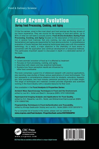 Of the five senses, smell is the most direct and food aromas are the key drivers of our flavor experience. They are crucial for the synergy of food and drinks. Up to 80% of what we call taste is actually aroma. This book deals with how food aromas are developed and affected during food processing, cooking, and aging.