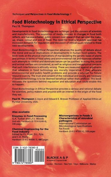 This book provides an overview of ethical issues arising in connection with progress made in food biotechnology. There is substantive discussion of the ethical issues referring to food safety, animal welfare, environmental impact, ownership of intellectual property, and consumer perception of the product. The arguments for and against issues causing major concern are evaluated, advancing the quality of the debate. It will be of interest to companies exploiting the new biotechnology techniques, government policy makers, food scientists and biotechnologist in academic research institutions.