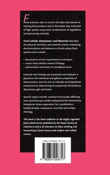 Food scientists aim to control the taste and texture of existing food products and to formulate new structures of high quality using novel combinations of ingredients and processing methods. Food Colloids, Biopolymers and Materials describes the physical chemistry and material science underlying the formulation and behaviour of multi-phase food systems and includes: * descriptions of new experimental techniques * recent food colloids research findings * authoritative overviews of conceptual issues Essential new findings are presented and emphasis is placed on the interfacial and gelation properties of food proteins, and the role of colloidal and biopolymer interactions in determining the properties of emulsions, dispersions, gels and foams. Specific topics include: confocal microscopy; diffusing wave spectroscopy; protein-polysaccharide interactions; biopolymer phase separation; fat crystallization; bubble/droplet coalescence; and bulk and surface rheology. This book is the latest addition to the highly regarded food colloid series published by the Royal Society of Chemistry and is of relevance to those working and researching in food science and surface and colloid science.
