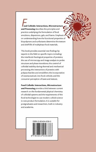 Food Colloids: Interactions, Microstructure and Processing describes the principles and practice underlying the formulation of food emulsions, dispersions, gels, and foams. Emphasis is on understanding how the functional properties of biopolymers and surfactants determine the texture and shelf-life of multiphase food materials. This book provides essential new findings by experts in the field on specific topics including: the interfacial rheological properties of proteins; the use of microscopy and image analysis to probe structure and phase transitions; the control of colloidal stability during thermal and mechanical processing; the interactions of proteins with polysaccharides and emulsifiers; the incorporation of neutraceuticals into food colloids; and the consumer perception of taste and texture. Food Colloids: Interactions, Microstructure and Processing provides a link between current research on the fundamental physical chemistry of colloidal systems and the requirements of the food technologist to use modern colloid science in new product formulation. It is suitable for postgraduates and researchers, both in industry and academia. TOC:Gels and Gelation.- Colloidal Interactions.- Adsorbed Layers.- Protein Functionality and Aggregation.- Foams and Emulsions.- Sensory Perception.- Structure Control and Processing.- Subject Index.