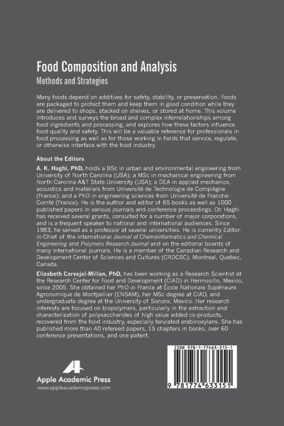 This book covers methods and strategies related to food composition and analysis. Topics include antioxidant activity of maize bran arabinoxylan microspheres; active packaging based on the release of carvacrol and thymol for fresh food; enzymes for the flavor, dairy, and baking industries; membrane technology in food processing; tenderization of meat and meat products; biological properties of mushrooms; polyacrylamide-grafted gelatin; irradiation of fruits, vegetables, and spices for better preservation and quality; oilseeds as a sustainable source of oil and protein for aquaculture feed.