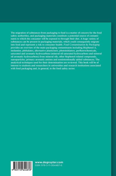 The migration of substances from packaging to food is a matter of concern for the food safety authorities, and packaging materials constitute a potential source of contaminants to which the consumer will be exposed to through their diet. A huge variety of substances can be present in packaging materials, which could consequently migrate into food and represent a risk to consumer health. Food Contamination by Packaging provides an overview of the main packaging contaminants including Bisphenol A, melamine, phthalates, alternative plasticisers, photoinitiators, perfluorochemicals, saturated and aromatic hydrocarbons (mineral oil saturated hydrocarbons and mineral oil aromatic hydrocarbons) from mineral oils, other bisphenol-related compounds, nanoparticles, primary aromatic amines and nonintentionally added substances. The analytical techniques used for their determination are reviewed. This book will be of interest to students and researchers in universities and research institutions associated with food packaging and, in general, to the food safety sector.