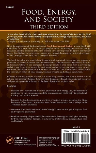 Analyzing the interdependency of food, energy, water, land, and biological resources, this third edition includes material on livestock production and energy use, the impacts of pesticides on the environment, and the conservation of biodiversity in agricultural, forestry, and marine systems. It compares the energy inputs of crop production in developing and developed countries, covers the agricultural and environmental issues related to water resources, details the threat of soil erosion to food and the environment, and explores solar energy, biomass systems, and ethanol production.