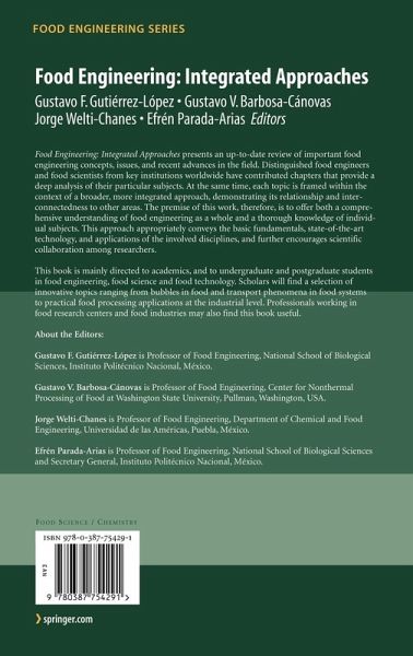 Food Engineering: Integrated Approaches presents a significant and up-to-date review of various integrated approaches to food engineering. Distinguished food engineers and food scientists from key institutions worldwide have contributed chapters that provide a deep analysis of their particular subjects; at the same time, each topic is framed within the context of this integrated approach. The premise of this work is that a comprehensive approach to food engineering requires a thorough knowledge of the subject and an effective integration of other disciplines in order to appropriately convey the state-of-the-art fundamentals and applications of the involved disciplines.