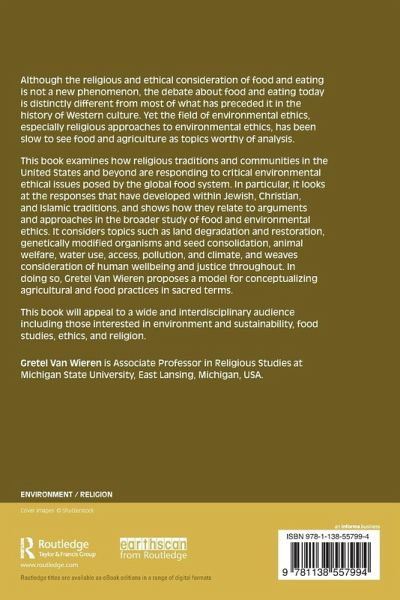 Although the religious and ethical consideration of food and eating is not a new phenomenon, the debate about food and eating today is distinctly different from most of what has preceded it in the history of Western culture. Yet the field of environmental ethics, especially religious approaches to environmental ethics, has been slow to see food and agriculture as topics worthy of analysis. This book examines how religious traditions and communities in the United States and beyond are responding to critical environmental ethical issues posed by the global food system. In particular, it looks at the responses that have developed within Jewish, Christian, and Islamic traditions, and shows how they relate to arguments and approaches in the broader study of food and environmental ethics. It considers topics such as land degradation and restoration, genetically modified organisms and seed consolidation, animal welfare, water use, access, pollution, and climate, and weaves consideration of human wellbeing and justice throughout. In doing so, Gretel Van Wieren proposes a model for conceptualizing agricultural and food practices in sacred terms. This book will appeal to a wide and interdisciplinary audience including those interested in environment and sustainability, food studies, ethics, and religion.