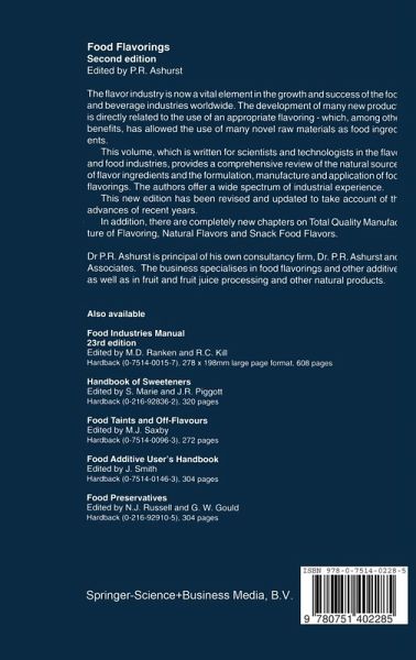 1 The control of quality in the manufacture of flavourings.- 1.1 Introduction.- 1.2 Preamble to the System of Quality.- 1.3 Organisation to Achieve BS 5750 Accreditation.- 1.3.1 Commitment is Mandatory.- 1.3.2 The Driver.- 1.3.3 Management Project Team.- 1.3.4 Dedicated Word Processor.- 1.3.5 Quality Manager.- 1.3.6 Communication.- 1.4 BS 5750 Specification, Production and Installation.- 1.4.1 Introduction.- 1.4.2 Quality System Requirements.- 1.5 The Detail.- 1.5.1 Departmental Manuals.- 1.5.2 Management Responsibility.- 1.5.3 Responsibility and Authority.- 1.5.4 The Policy Manual.- 1.5.5 Quality System.- 1.5.6 Contract Review.- 1.5.7 Document Control.- 1.5.8 Purchasing.- 1.5.9 Purchaser-Supplied Product.- 1.5.10 Product Identification and Traceability.- 1.5.11 Process Control.- 1.5.12 Inspection and Testing.- 1.5.13 Inspection, Measuring and Test Equipment.- 1.5.14 Inspection and Test Status.- 1.5.15 Control of Non-Conforming Products.- 1.5.15 Corrective Action.- 1.5.16 Handling, Storage, Packing and Delivery.- 1.5.17 Quality Records.- 1.5.18 Internal Quality Audits.- 1.5.19 Training.- 1.6 The Assessment.- 1.6.1 Outline.- 1.6.2 The Pre-assessment.- 1.7 Conclusion.- Note.- 2 Essential oils.- 2.1 Introduction.- 2.2 The Production of Essential Oils.- 2.2.1 Steam Distillation.- 2.2.2 Water Distillation.- 2.2.3 Dry Distillation Methods.- 2.2.4 Expression of Oils.- 2.2.5 Extraction.- 2.3 Further Processing of Essential Oils.- 2.3.1 Rectification.- 2.3.2 Washed Oils.- 2.3.3 Oil Quality.- 2.4 The Uses of Essential Oils.- 2.5 The Composition of Essential Oils.- 2.5.1 Bitter Almond Oil.- 2.5.2 Bergamot Oil.- 2.5.3 Buchu Leaf Oil.- 2.5.4 Cassia Oil.- 2.5.5 Cinnamon Oil.- 2.5.6 Clove Oil.- 2.5.7 Coriander Oil.- 2.5.8 Cornmint Oil.- 2.5.9 Cumin Seed Oil.- 2.5.10 Davana Oil.- 2.5.11 Dill Oil.- 2.5.12 Eucalyptus Oil.- 2.5.13 Garlic Oil.- 2.5.14 Ginger Oil.- 2.5.15 Grapefruit Oil.- 2.5.16 Jasmin Concrete and Absolute.- 2.5.17 Lemongrass Oil.- 2.5.18 Lemon Oil.- 2.5.19 Lime Oil.- 2.5.20 Litsea Cubeba Oil.- 2.5.21 Nutmeg Oil.- 2.5.22 Peppermint Oil.- 2.5.23 Rose Oil.- 2.5.24 Rosemary Oil.- 2.5.25 Spearmint Oil.- 2.5.26 Star Anise Oil.- 2.5.27 Sweet Orange Oil.- 2.5.28 Tangerine Oil.- 2.5.29 Thyme Oil.- 3 Oleoresins, tinctures and extracts.- 3.1 Introduction.- 3.1.1 General Comments.- 3.1.2 Costs.- 3.1.3 Raw Materials and Processes.- 3.2 Plant Materials.- 3.2.1 Origin.- 3.2.2 Crop to Crop Variations.- 3.2.3 Storage.- 3.2.4 Yield.- 3.2.5 Degradation.- 3.2.6 Preparation of Plant Material.- 3.2.7 Vanilla Bean Curing (Classical Method).- 3.3 Solvents.- 3.3.1 Polarity.- 3.3.2 Boiling Point.- 3.3.3 Viscosity.- 3.3.4 Latent Heat of Evaporation.- 3.3.5 Temperature/Pressure.- 3.4 Tinctures.- 3.4.1 Water Infusions.- 3.4.2 Alcoholic Tinctures.- 3.5 Oleoresins.- 3.5.1 Solvents.- 3.5.2 Solubility.- 3.5.3 Commercial Solvent Extraction System.- 3.6 Absolutes 77 3.6.1 Solvents.- 3.7 Extraction with Carbon Dioxide as a Solvent.- 3.7.1 Introduction.- 3.7.2 Subcritical C02.- 3.7.3 SupercriticalC02.- 3.8 Summary.- 4 Fruit juices.- 4.1 Introduction.- 4.2 Fruit processing.- 4.2.1 GeneralConsiderations.- 4.2.2 Soft Fruit Processing.- 4.3 Specialised Fruit Processing.- 4.3.1 Citrus.- 4.3.2 Comminuted Citrus Bases.- 4.3.3 Pineapple Juice.- 4.3.4 Processes Requiring Heat.- 4.4 Products and Packaging.- 4.4.1 Frozen Juices.- 4.4.2 Aseptic Packaging.- 4.4.3 Self-Preserved Juice.- 4.4.4 Preserved Juice.- 4.4.5 Hot Pack Products.- 4.5 Product Specifications.- 4.5.1 Soluble Solids Content.- 4.5.2 Titratable Acidity.- 4.5.3 Brix/Acid Ratio.- 4.5.4 Other Specifications.- 4.5.5 Juice Adulteration.- 4.5.6 Specifications for Essence/Volatiles/Citrus Oils.- 4.6 Volatile Components of Fruit Juices.- 4.6.1 Production.- 4.6.2 Composition of Fruit Juice Volatile Fractions.- 4.7 The Use of Fruit Juices in Flavourings.- 4.7.1 Fruit Juice Compounds.- 4.7.2 Flavourings.- 4.8 Summary.- 5 Synthetic ingredients of food flavourings.- 5.1 General Aspects.- 5.1.1 Introduction, Definitions an...