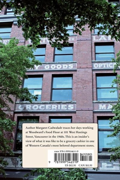 Author Margaret Cadwaladr traces her time working as a grocery cashier at Woodward's Food Floor, 101 West Hasting Street, Vancouver in the 1960s.This memoir contains historical and contemporary b & w and colour images. The book was completed during the COVID-19 pandemic and is dedicated to frontline grocery cashiers and clerks.