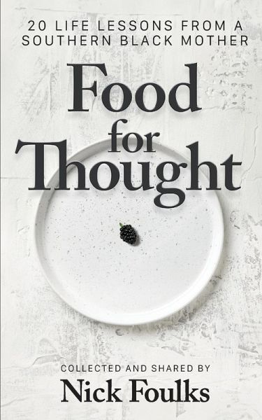 Nick Foulks' mother had many words of wisdom for him as he grew up. In this book of twenty wise sayings, the author breaks them down for the reader, explaining what they mean and reflects on how they impacted his life. The author shares reflection questions for the reader as well. Readers of this book will also want to find the companion volume, which is a journal for the reader to reflect more deeply and record their own family sayings. The companion volume is titled "Food for Thought Journal: Our Family's Recipes for Wisdom."