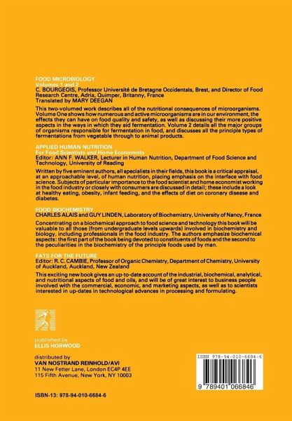 This textbook is intended for students of dietetics and applied home economics, for use in teacher training, higher hotel schools and for students of human nutrition in agricultural departments of universities. Students and others with a professional or personal interest who want to know more about foodstuffs and related products can also use it as a reference work. The first four chapters give a general introduction and deal with, in this order, production, distribution and legislation (Chapter 1), potential forms of quality deterioration and spoilage (Chapter 2), methods of preservation (Chapter 3), and the presence of additives and contaminants in foodstuffs (Chapter 4). The main part of the book (see the scheme on page 11) describes the various product groups and, group by group, deals with technology, composition, potential use and storage advice. Where appropriate, a description of typical and special products follows, including those that are not essential dietary items. We areindebted to the Board of Directors of the Hogeschool Nijmegen Akademie Dietetiek. We were allowed to use as the basis for this book a thesis written previously. We also thank our colleagues, especially those from the subject department of Food, and students from the Akademie Dietetiek for remarks and marginal notes, which they made in the aforementioned thesis.