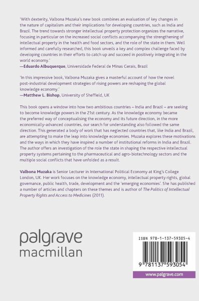 This book opens a window into how two ambitious countries - India and Brazil - are seeking to become knowledge powers in the 21st century. As the knowledge economy became the preferred way of conceptualising the economy and its future direction, in the more economically-advanced countries, our search for understanding also followed the same direction. This generated a body of work that has neglected countries that, like India and Brazil, are attempting to make the leap into knowledge economies. Muzaka explores these motivations and the ways in which they have inspired a number of institutional reforms in India and Brazil. The author offers an investigation of the role the state in shaping the respective intellectual property systems pertaining to the pharmaceutical and agro-biotechnology sectors and the multiple social conflicts that have unfolded as a result.