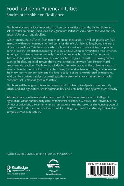 Sabine O´Hara provides an inspiring rationale for why we need to rethink urban food systems. She vividly illustrates that food systems entail more than producing crops and eating foodstuffs. They are essentially shaped by relationships between people and nature. She also provides encouraging examples of urban food initiatives that emphasize cooperation and social relationships over short-term profit and create entry points for designing an urban food system that can provide nutritious food for all. By drawing attention to restorative practices, Sabine O´Hara highlights the importance of redefining efficiency and economic value creation through networks that can improve food security and enhance equity in American cities. This book is an excellent source for anyone in search of promising solutions for establishing a healthy and resilient food systems in cities around the world. -Dr. Diana Sietz, Thünen Institute of Biodiversity, Germany.