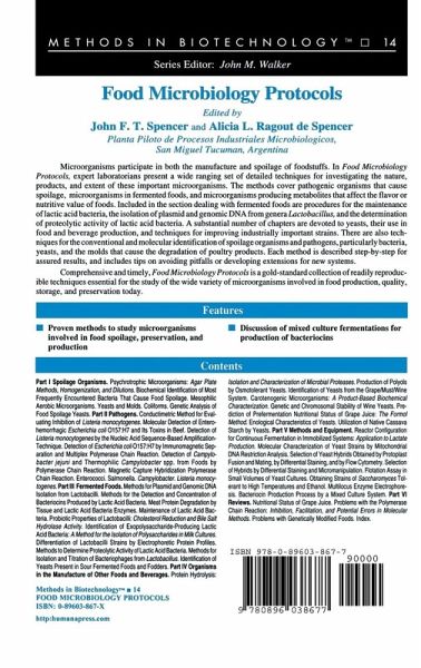 Two of the recent books in the Methods in Molecular Biology series, Yeast Protocols and Pichia Protocols, have been narrowly focused on yeasts and, in the latter case, particular species of yeasts. Food Microbiology Pro- cols, of necessity, covers a very wide range of microorganisms. Our book treats four categories of microorganisms affecting foods: (1) Spoilage organisms; (2) pathogens; (3) microorganisms in fermented foods; and (4) microorganisms p- ducing metabolites that affect the flavor or nutritive value of foods. Detailed information is given on each of these categories. There are several chapters devoted to the microorganisms associated with fermented foods: these are of increasing importance in food microbiology, and include one bacteriophage that kills the lactic acid bacteria involved in the manufacture of different foods-cottage cheese, yogurt, sauerkraut, and many others. The other nine chapters give procedures for the maintenance of lactic acid bacteria, the isolation of plasmid and genomic DNA from species of Lac- bacillus, determination of the proteolytic activity of lactic acid bacteria, det- mination of bacteriocins, and other important topics.
