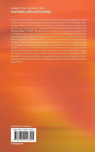 The present book collects selected contributions from researchers working in the field of food science, and participating at the second spring school for "Food Quality, Safety and Technology," which was held in Botucatu (São Paulo, Brazil), from September 24th to 27th, 2012, at the Botucatu Campus of the Universidade Estadual Paulista "Julio Mesquita Filho" (UNESP). The goal of the conference was to provide a scientific forum covering large areas of agronomy, nutrition, food science and technology, veterinary and other areas related to food technology development. Teachers, professionals, graduate and post-graduate students in Food Science; Food and Agriculture Engineering; Veterinary, Science and Food Technology and related areas were addressed by providing an exchange of knowledge and technologies. The initiative aimed to establish uniform, globally recognized scientific principles on food safety and quality, which could be consistently applied to industry and production sectors and stakeholders, taking into account that effective food control systems are essential to protecting the health and safety of domestic consumers, to guaranteeing the safety and quality of foods entering international trade, and to ensuring that imported foods conform to national requirements.