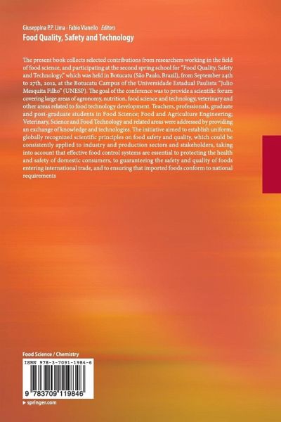 The present book collects selected contributions from researchers working in the field of food science, and participating at the second spring school for "Food Quality, Safety and Technology," which was held in Botucatu (São Paulo, Brazil), from September 24th to 27th, 2012, at the Botucatu Campus of the Universidade Estadual Paulista "Julio Mesquita Filho" (UNESP). The goal of the conference was to provide a scientific forum covering large areas of agronomy, nutrition, food science and technology, veterinary and other areas related to food technology development. Teachers, professionals, graduate and post-graduate students in Food Science; Food and Agriculture Engineering; Veterinary, Science and Food Technology and related areas were addressed by providing an exchange of knowledge and technologies. The initiative aimed to establish uniform, globally recognized scientific principles on food safety and quality, which could be consistently applied to industry and production sectors and stakeholders, taking into account that effective food control systems are essential to protecting the health and safety of domestic consumers, to guaranteeing the safety and quality of foods entering international trade, and to ensuring that imported foods conform to national requirements.