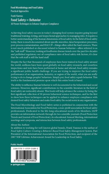 This book helps in Achieving food safety success which requires going beyond traditional training, testing, and inspectional approaches to managing risks. It requires a better understanding of the human dimensions of food safety. In the field of food safety today, much is documented about specific microbes, time/temperature processes, post-process contamination, and HACCP-things often called the hard sciences. There is not much published or discussed related to human behavior-often referred to as the "soft stuff." However, looking at foodborne disease trends over the past few decades and published regulatory out-of-compliance rates of food safety risk factors, it's clear that the soft stuff is still the hard stuff. Despite the fact that thousands of employees have been trained in food safety around the world, millions have been spent globally on food safety research, and countless inspections and tests have been performed at home and abroad, food safety remains a significant public health challenge. Why is that? Because to improve food safety, we must realize that it's more than just food science; it's the behavioral sciences, too. In fact, simply put, food safety equals behavior. This is the fundamental principle of this book. If you are trying to improve the food safety performance of a retail or food service establishment, an organization with thousands of employees, or a local community, what you are really trying to do is change people's behavior. The ability to influence human behavior is well documented in the behavioral and social sciences. However, significant contributions to the scientific literature in the field of food safety are noticeably absent. This book will help advance the science by being the first significant collection of 50 proven behavioral science techniques, and be the first to show how these techniques can be applied to enhance employee compliance with desired food safety behaviors and make food safety the socialnorm in any organization.
