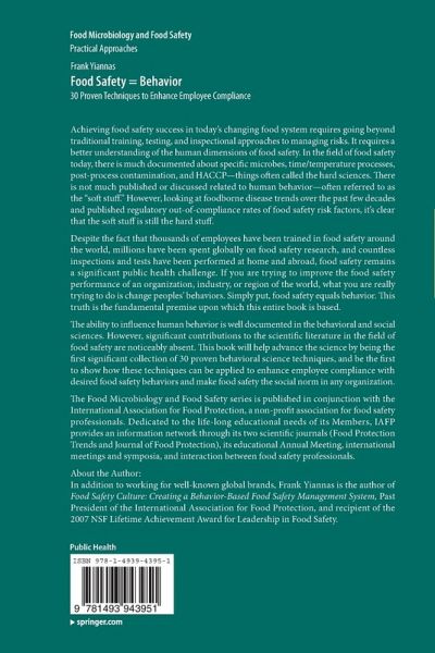 This book helps in Achieving food safety success which requires going beyond traditional training, testing, and inspectional approaches to managing risks. It requires a better understanding of the human dimensions of food safety. In the field of food safety today, much is documented about specific microbes, time/temperature processes, post-process contamination, and HACCP-things often called the hard sciences. There is not much published or discussed related to human behavior-often referred to as the "soft stuff." However, looking at foodborne disease trends over the past few decades and published regulatory out-of-compliance rates of food safety risk factors, it's clear that the soft stuff is still the hard stuff. Despite the fact that thousands of employees have been trained in food safety around the world, millions have been spent globally on food safety research, and countless inspections and tests have been performed at home and abroad, food safety remains a significant public health challenge. Why is that? Because to improve food safety, we must realize that it's more than just food science; it's the behavioral sciences, too. In fact, simply put, food safety equals behavior. This is the fundamental principle of this book. If you are trying to improve the food safety performance of a retail or food service establishment, an organization with thousands of employees, or a local community, what you are really trying to do is change people's behavior. The ability to influence human behavior is well documented in the behavioral and social sciences. However, significant contributions to the scientific literature in the field of food safety are noticeably absent. This book will help advance the science by being the first significant collection of 50 proven behavioral science techniques, and be the first to show how these techniques can be applied to enhance employee compliance with desired food safety behaviors and make food safety the socialnorm in any organization.
