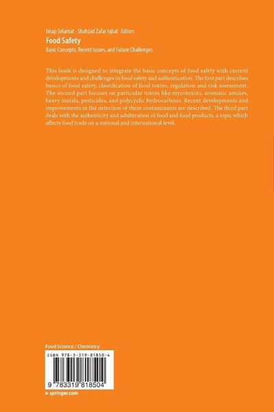 Part 1: Food Safety.- Chapter 1: Food safety systems.- Chapter 2: Regulations for food toxins.- Part 2: Chemical Food Contaminants.- Chapter 3: Safe food production with minimum and judicious use of pesticides.- Chapter 4: Toxic Elements.- Chapter 5: Heterocyclic amines.- Chapter 6: Mycotoxins in Food and food products; current status.- Part 3: Future Challenges.- Chapter 7: Food Adulteration and Authenticity.- Chapter 8: Climate change and food safety.