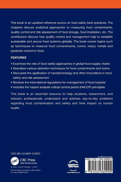 This book discusses food safety and quality control management. It discusses analytical approaches to measuring food contaminants, and risk assessment of food storage. It covers topics like techniques to measure aflatoxin, heavy metals in seafood, and pesticide content in food. It also reviews measures to attain sustainable food systems.