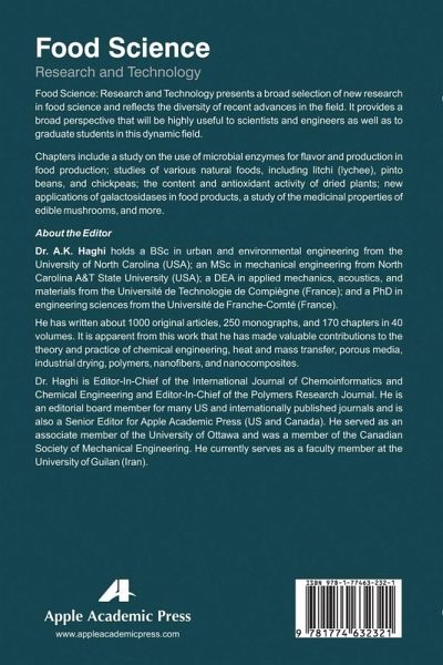 Food Science: Research and Technology presents a broad selection of new research in food science and reflects the diversity of recent advances in the field. Chapters include a study on the use of microbial enzymes for flavor and production in food production; studies of various natural foods, including litchi (lychee), pinto beans, and chickpeas; the content and antioxidant activity of dried plants; new applications of galactosidases in food products; a study of the medicinal properties of edible mushrooms; and more.