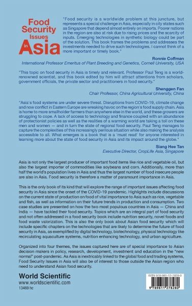 Asia is not only the largest producer of important food items like rice and vegetable oil, but also the largest importer of commodities like soybeans and corn. Additionally, more than half the world's population lives in Asia and thus the largest number of food insecure people are also in Asia. Food security is therefore a matter of paramount importance in Asia. This is the only book of its kind that will explore the range of important issues affecting food security in Asia since the onset of the COVID-19 pandemic. Highlights include discussions on the current state of production on food of vital importance to Asia such as rice, vegetable and fish, as well as information on their future trends in production and consumption. Two case studies are presented on how the two most populous countries in Asia - China and India - have tackled their food security. Topics which are an integral part of food security and not often addressed in a food security book include nutrition security, novel foods and food waste valorization. This is also the only book about Asian food security which will include specific chapters on the technologies that are likely to determine the future of food security in Asia, as exemplified by digital technology, biotechnology, physical technology like recirculating aquaculture systems, nutrition enhancing technology, and urban agriculture. Organized into four themes, the issues captured here are of special importance to Asian decision makers in policy, research, development, investment and education in the "new normal" post-pandemic. As Asia is inextricably linked to the global food and trading systems, Food Security Issues in Asia will also be of interest to those outside the Asian region who need to understand Asian food security.